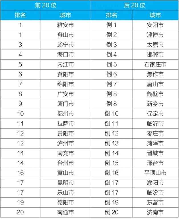 2020年10月168個重點(diǎn)城市排名前20位和后20位城市名單